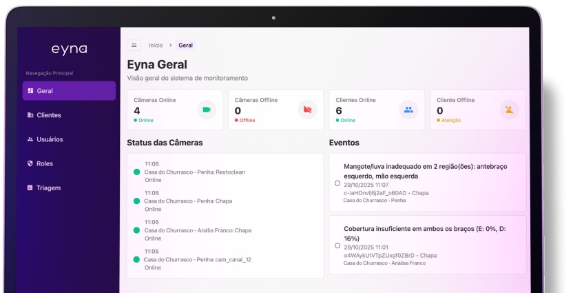 O OmniVision é o núcleo das soluções da Eyna: uma plataforma de visão computacional que centraliza toda a inteligência visual da operação.